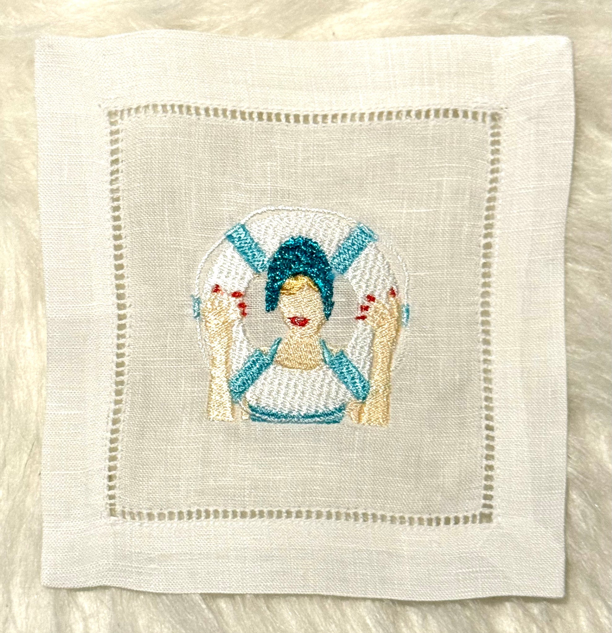 Hemstitched and mitered corners